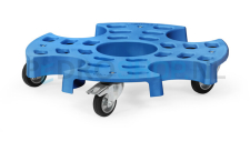 De roller is voorzien van 4 TPE zwenkwielen, waarvan één met rem. De grotere wielen maken het transport op oneffen ondergronden mogelijk. Tevens is de roller voorzien van een praktische materiaalbak voor het bewaren van kleine onderdelen.