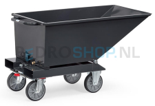 De wagen is voorzien van voetplaat en kantbeveiling. Met de duwbeugel is de wagen gemakkelijk te besturen. De wagen is verrijdbaar en voor heftruck gebruik, manuele kiep voortgang. Voor het legen met een vorkheftruck of bij een zware beladingen raden wij een kiepbak of kantelbak aan.