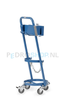 De Fetra 51162 gasflessenroller in gelaste stalen constructie, gepoedercoat in de kleur blauw (RAL 5007). De roller kent een draagvermogen van 80 kg, geschikt voor 1 propaangasfles 11 kg inhoud, diameter 300 mm. De inwendige diameter is 310 mm. De wagen is voorzien van 4 zwenkwielen, waarvan 2 stuks met rem van TPE rubber wielen, naaf met kogellager.
