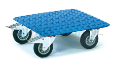 Het rolplateau is voorzien van 4 zwenkwielen van TPE rubber. Twee zwenkwielen zijn voorzien van een rem om de roller niet weg te laten rijden als deze beladen is of op een kleine helling staat.