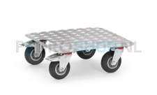 Het rolplateau is voorzien van 4 zwenkwielen van TPE rubber. Twee zwenkwielen zijn voorzien van een rem om de roller niet weg te laten rijden als deze beladen is of op een kleine helling staat.