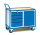 De werkplaatswagen is voorzien van een centraal afsluitbare schuifladenkast (HxBxT: 600x500x600 mm) met 4 schuifladen (3 x 120 mm hoog en 1 x 180 mm hoog) met kogellagergeleiding en uittrekbeveiliging. De lades zijn tot 4/5 uittrekbaar. Draagvermogen per schuiflade is 25 kg. Ook heeft deze werkplaatswagen een stalen kast, welke is gepoedercoat. De kast heeft 1 vast legbord en 2 verstelbare legborden. De afmetingen van de kast zijn: 500 x 600 x 600 mm (BxDxH). Het draagvermogen per legbord is 30 kg. De ombouw is van de kast en lades is grijs (RAL 7035), front blauw (RAL 5007).