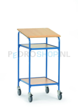 De Fetra verrijbare lessenaar 5834 is gemaakt van stalen buis en gelast profielstaal. De schroefconstructie is gepoedercoat in de kleur blauw (RAL 5007). Het totale draagvermogen van de lessenaar is 100 kg.