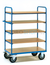 De wagen is voorzien van 1 vaste en 4 verstelbare etages welke zijn gemaakt van een houtvezelplaat. De toplaag van de plaat is bedekt met beukendecor. De verstelbare etages zijn instelbaar in een raster van 100mm. Het laadvlak is 850 x 500 mm en kent een maximaal draagvermogen van 90 kg per etage. Het maximale draagvermogen van de wagen is 500 kg.