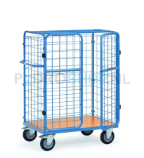 Het frame is gemaakt van een stalen buis constructie. Deze is gepoedercoat is de kleur blauw (RAL 5007). Hierdoor is de constructie slag- en krasvast. De Fetra pakketwagen 8483-3 heeft 2 kopwanden en 1 lange zijde met ingelast draadgaas 100 x 100 x 5 mm en is voorzien van eet een dubbele vleugeldeur aan de open zijkant. De vleugeldeuren zijn tot tegen de kopwand open te slaan. Door het in het raamwerk geintegreerd grendelslot is de pakketwagen afsluitbaar door middel van een hangslot.