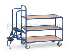 De orderverzamelwagens zijn ideaal wanneer er regelmatig order gepickt en vervoerd worden in het magazijn of werktplaats. Door de trap kunt u ook eenvoudig producten uit hogere stelling picken.