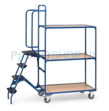 De orderverzamelwagens zijn ideaal wanneer er regelmatig order gepickt en vervoerd worden in het magazijn of werktplaats. Door de trap kunt u ook eenvoudig producten uit hogere stelling picken.