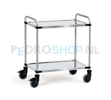 De handzame serveerwagens van Fetra uitgevoerd in roestvrijstaal waardoor deze ook inzetbaar is in natte en vochtige ruimten.