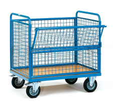 De Fetra bakwagen 2772 is gemaakt van stalen buis en gelast profielstaal. Het frame is gepoedercoat in de kleur blauw (RAL 5007). Het draadgaas (50 x 50 x 4 mm) is ingelast ingelast. De wanden hebben een nuttige hoogte van 700 mm.