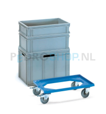 De wagen is voorzien van 4 zwenkwielen van polyamide, naaf met glijlager waarvan 2 stuks met rem. Hierdoor voldoet de wagen aan de EU-norm EN 1757-3, de veiligheidsnorm voor platformwagens. Het product wordt gedemonteerd aangeleverd.