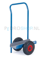 De roller is voorzien van luchtbanden. Indien gewenst kan de roller ook geleverd worden met wielen van TPE.