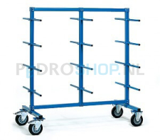 De draagarmwagens van Fetra zijn geschikt voor het transport en opslag van lange materialen. Door de verkrijgbare accessoires kunt u de wagen helemaal naar wens aanpassen. Denk hierbij aan PVC-slang, afrolbeveliging, een duwbeugel of houten legborden.