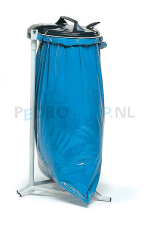 De afvalzakhouder is gemaakt van gelaste stalen buis in de kleur grijs RAL 7035.