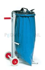 Voorzien van een PVC deksel en klemring. De diameter is 340 mm, geschikt voor 120 liter zakken. De afvalhouder is voorzien van 2 poten en 2 massief rubber banden (150 mm).