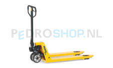 De lengte van de vorken is 1150 mm en de vorken kennen een breedte van 160 mm. De totale vorkbreedte is 540 mm en de totale lengte van we pompwagen is 1540 mm. De wagen heeft een draagvermogen van maximaal 2500 kg.