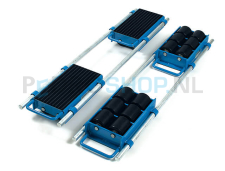 Het draagvlak voorzien van antislip rubber en is 350 x 200 mm. Het draagvermogen van de onderzetroller is 12.000 kg. De onderzetroller is verstelbaar een heeft een verstelbereik van 700 tot 1190 mm. Wordt geleverd met 2 onderzetrollers en 2 verbindingsstangen van rond staal.