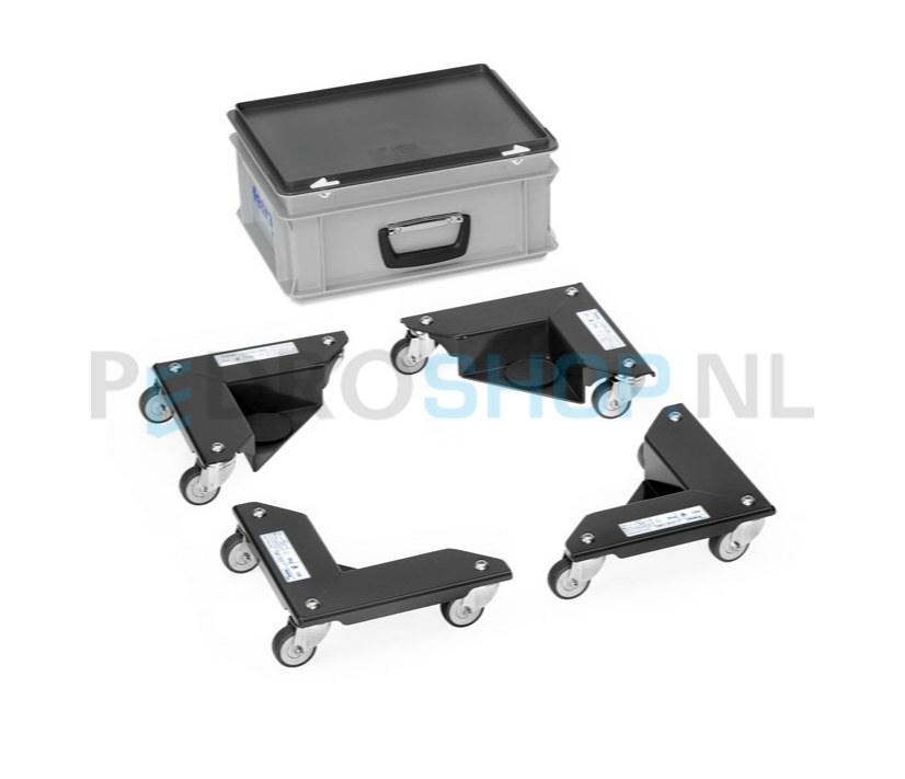 De hoekroller is voorzien van 3 zwenkwielen van TPE rubber en kent een draagvermogen van mag 150 kg per stuk. Deze hoekrollers worden in een set van 4 geleverd.