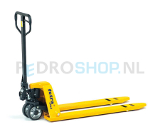 De Fetra 2120 is een lage uitvoering onder de handpallettrucks, maar nog steeds in een robuust frame en dubbel omgezette vorken in poedercoating geel, voorzien van een hydraulische handpomp. De handpomp is onderhoudsvrij gelagerd.