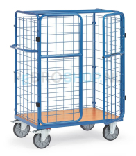 Het frame is gemaakt van een stalen buis constructie. Deze is gepoedercoat is de kleur blauw (RAL 5007). Hierdoor is de constructie slag- en krasvast. De Fetra pakketwagen 8481-3 heeft 2 kopwanden en 1 lange zijde met ingelast draadgaas 100 x 100 x 5 mm en is voorzien van eet een dubbele vleugeldeur aan de open zijkant. De vleugeldeuren zijn tot tegen de kopwand open te slaan. Door het in het raamwerk geintegreerd grendelslot is de pakketwagen afsluitbaar door middel van een hangslot.